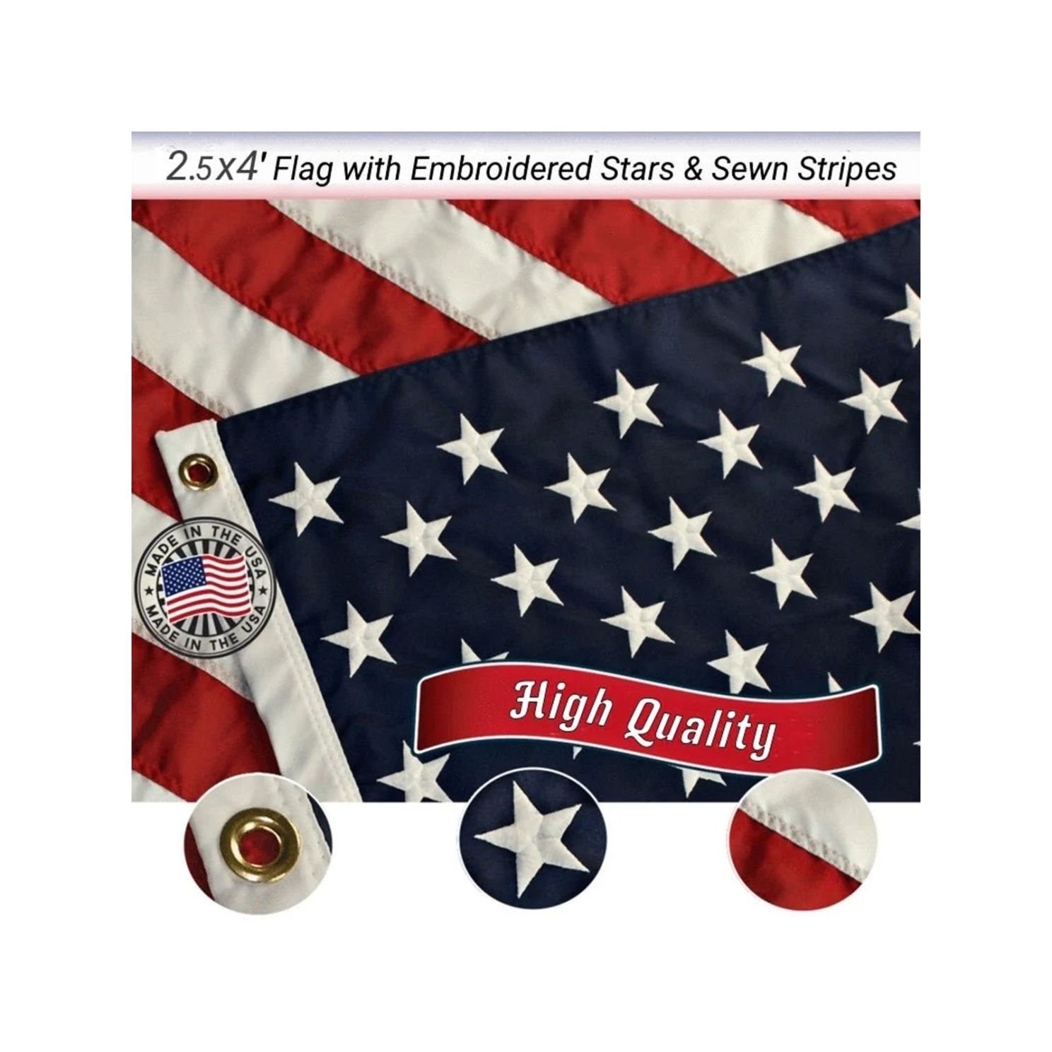 - 2.5x4' American Flag Proudly Made in U.S.A.! Quality Embroidered Stars and Sewn Stripes